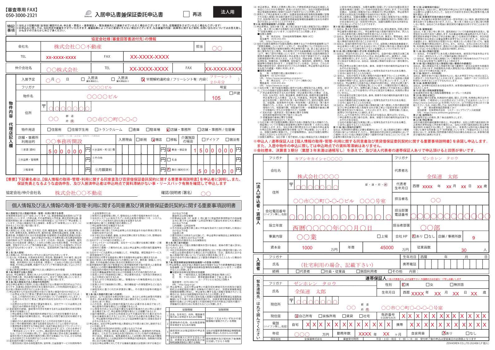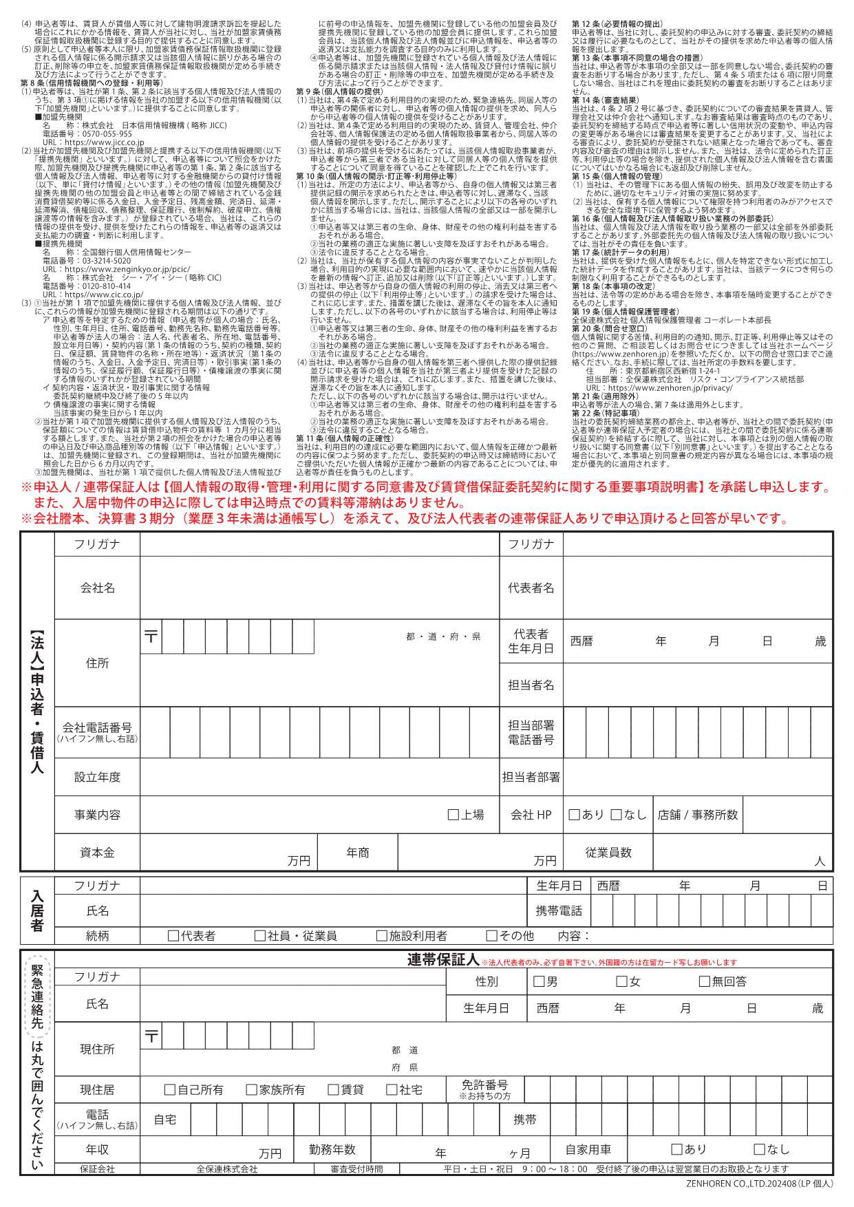 •保証会社「全保連」申込書(法人用)<1枚目> <2枚目><3枚目><見本>