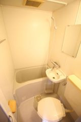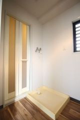 室内洗濯機置場や水回りのお掃除がしやすい3点式ユニットバス。