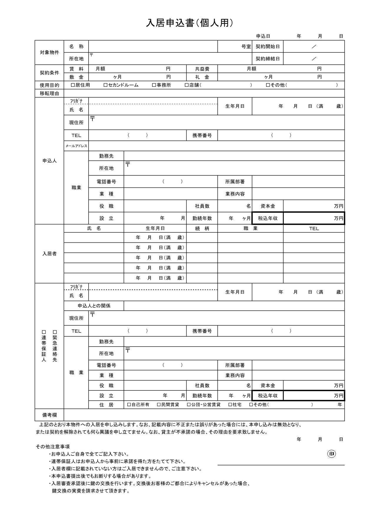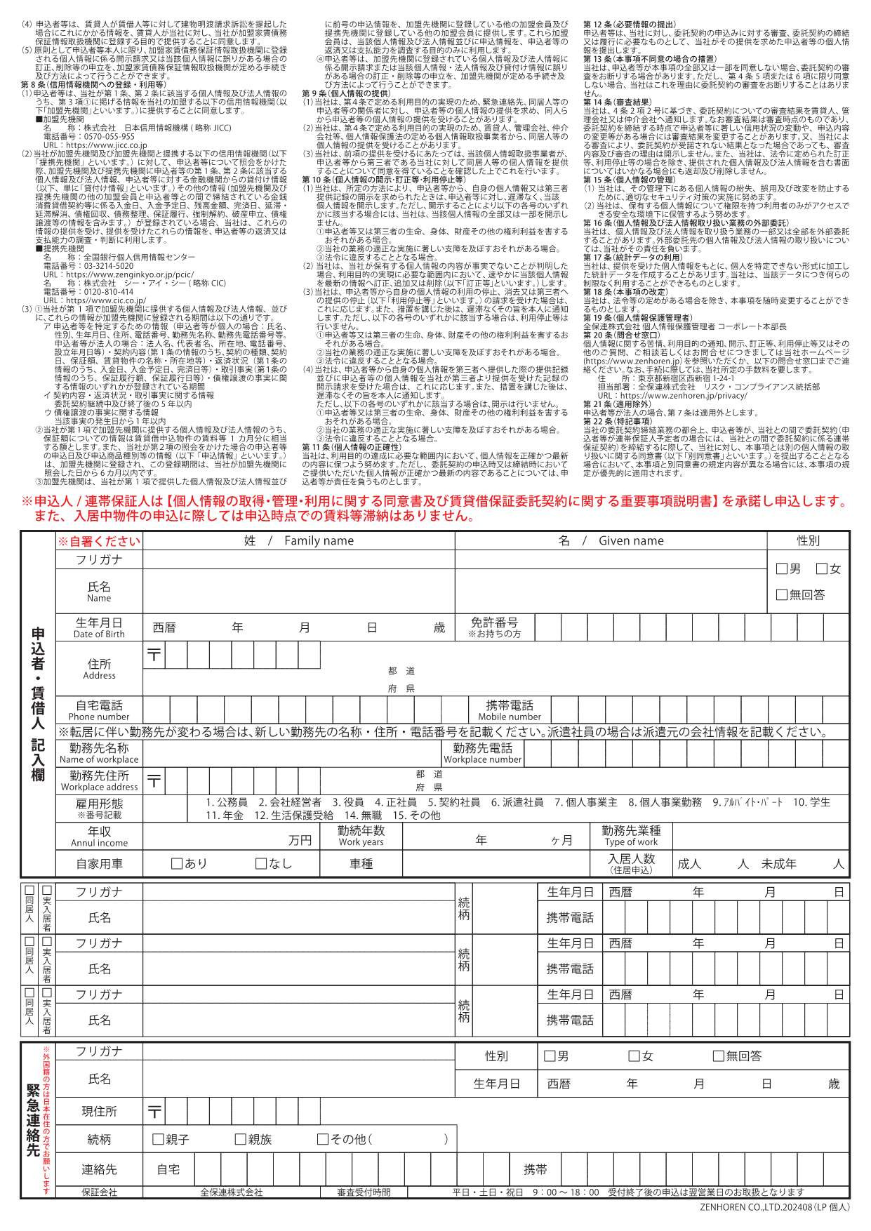 •保証会社「全保連」申込書(個人用)<1枚目> <2枚目> <3枚目> <見本>