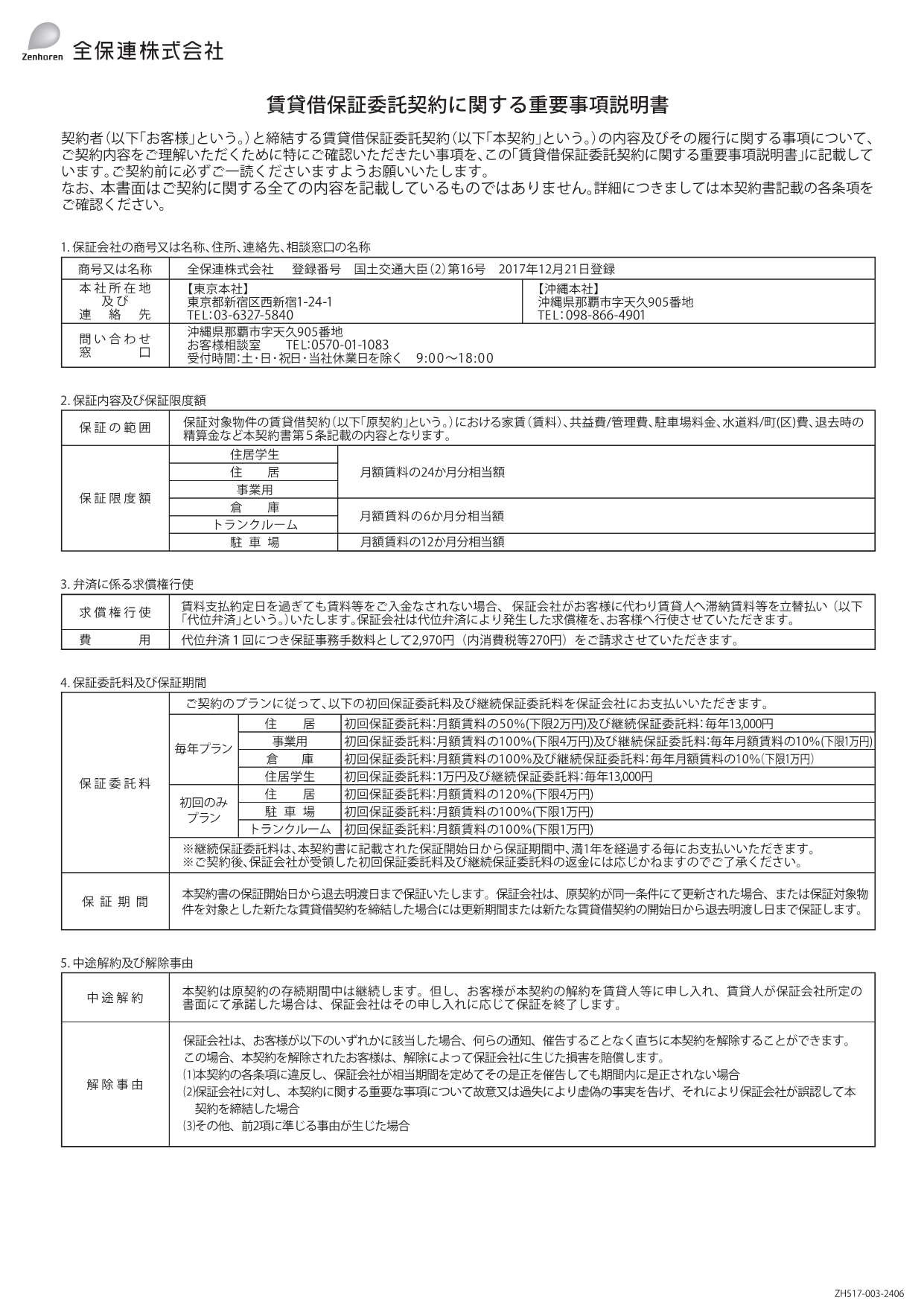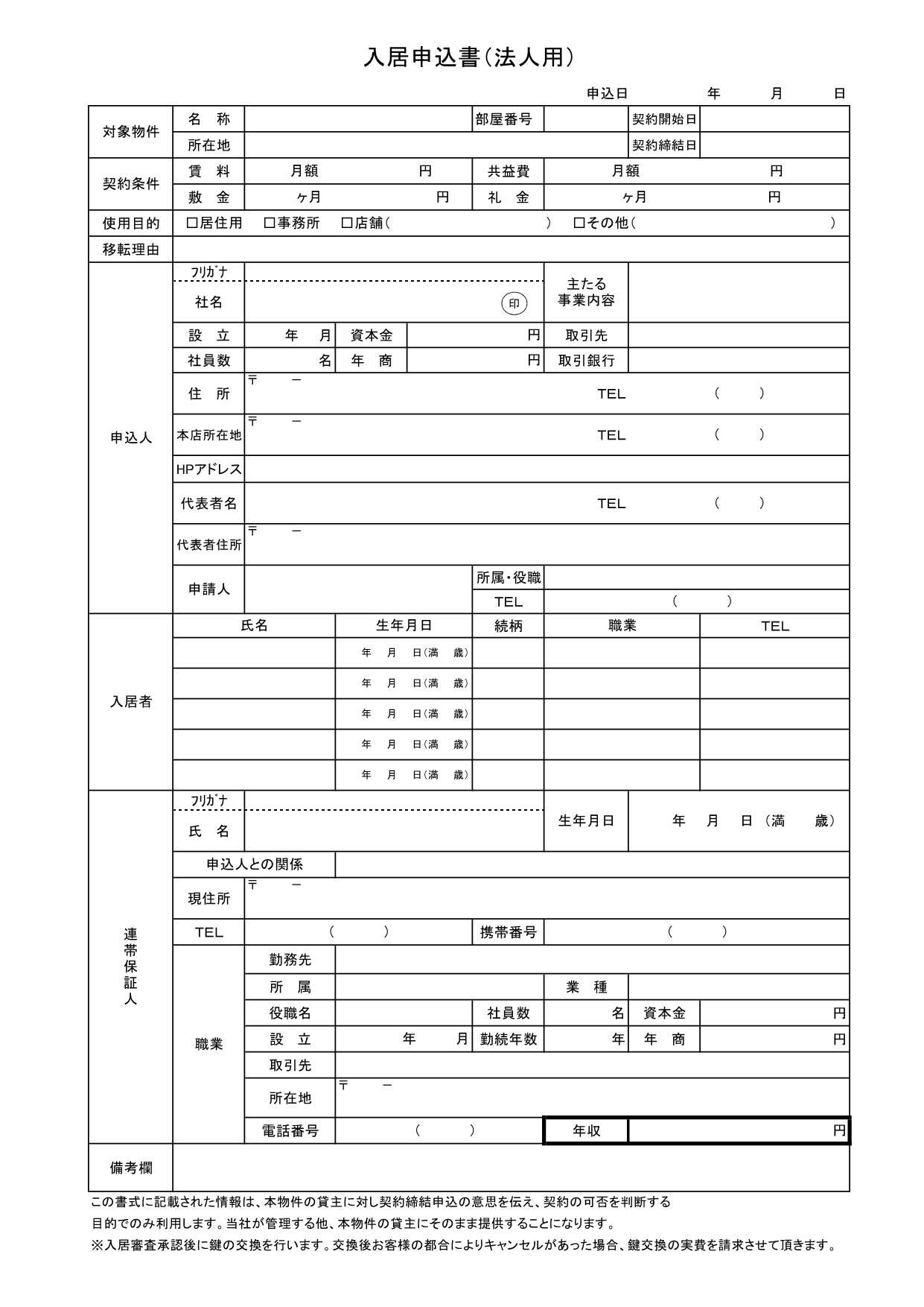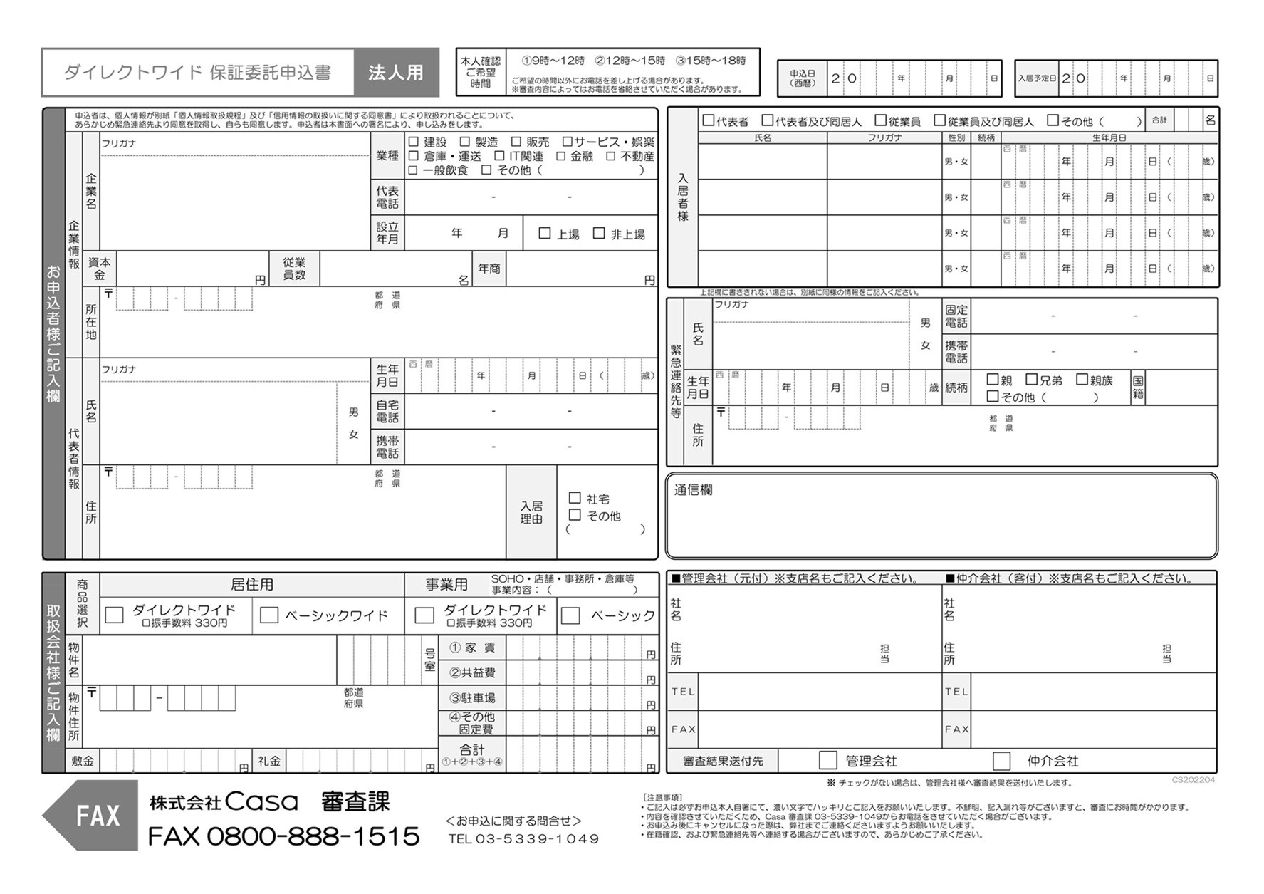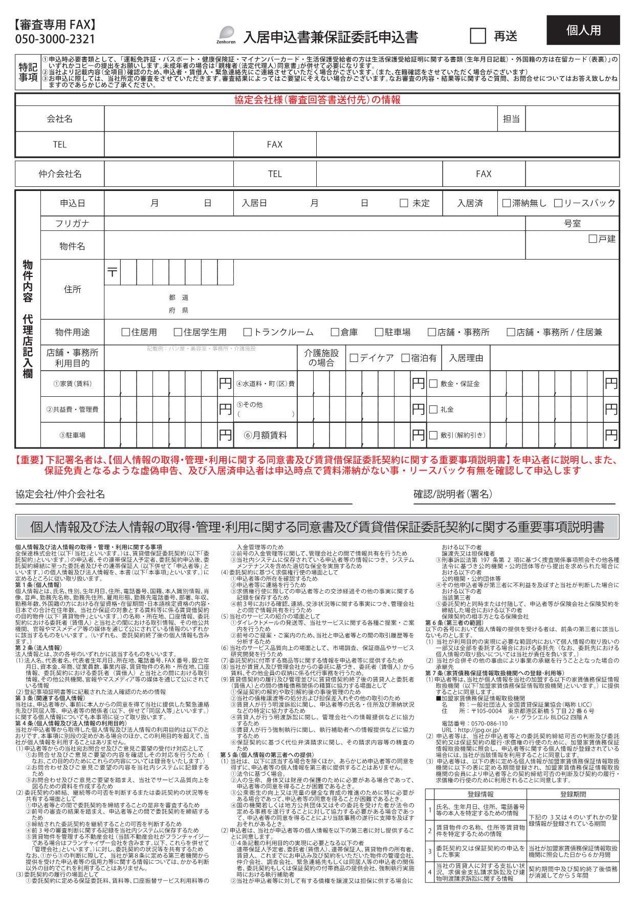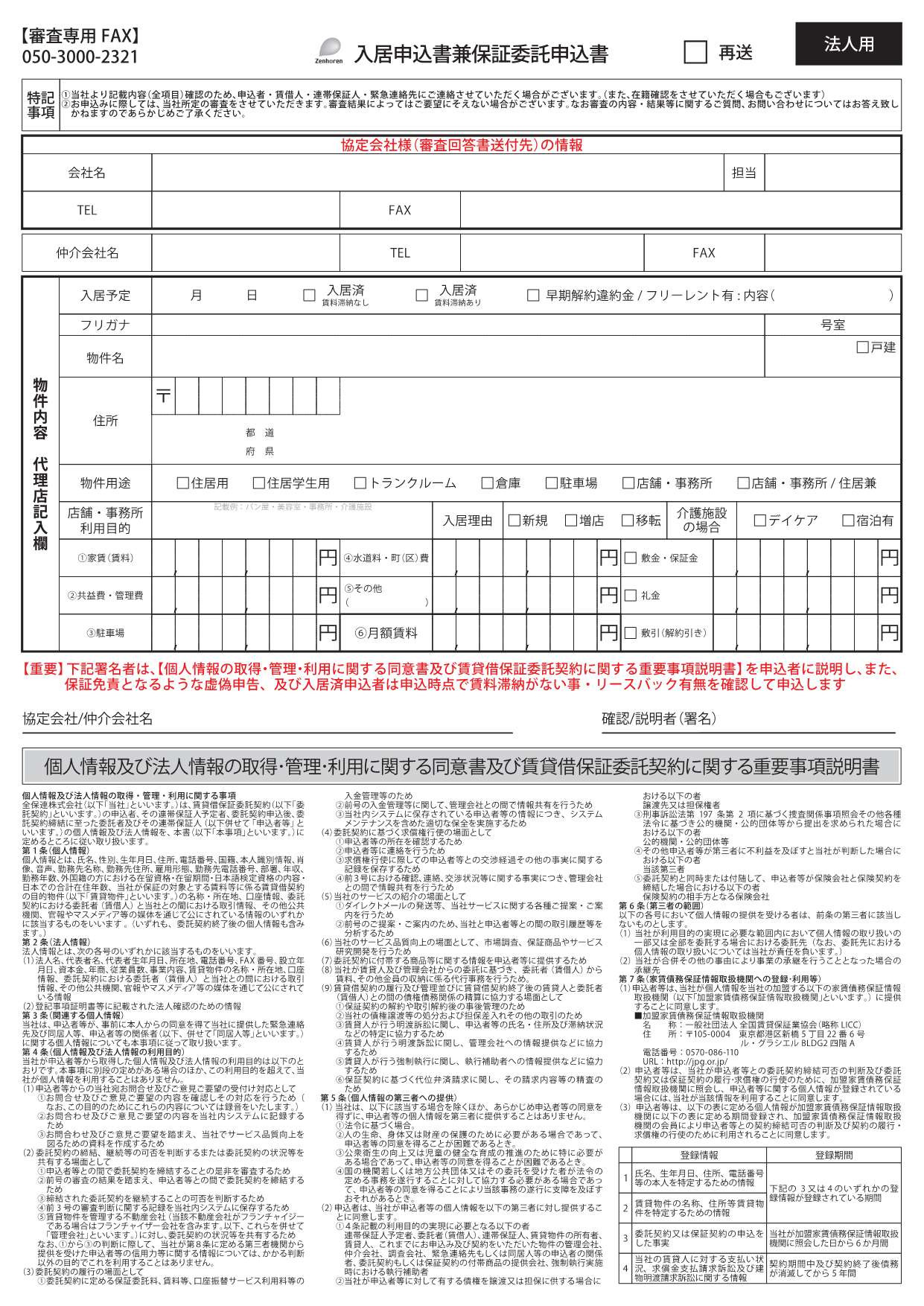 •保証会社「全保連」申込書(法人用)<1枚目> <2枚目><3枚目><見本>