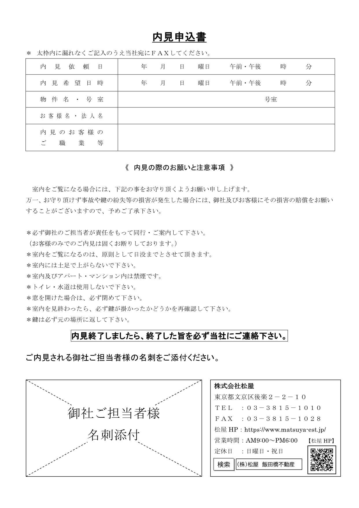 管理物件でないお部屋は、契約書一式をご確認の上、直接オーナー様へお問合せ下さい。