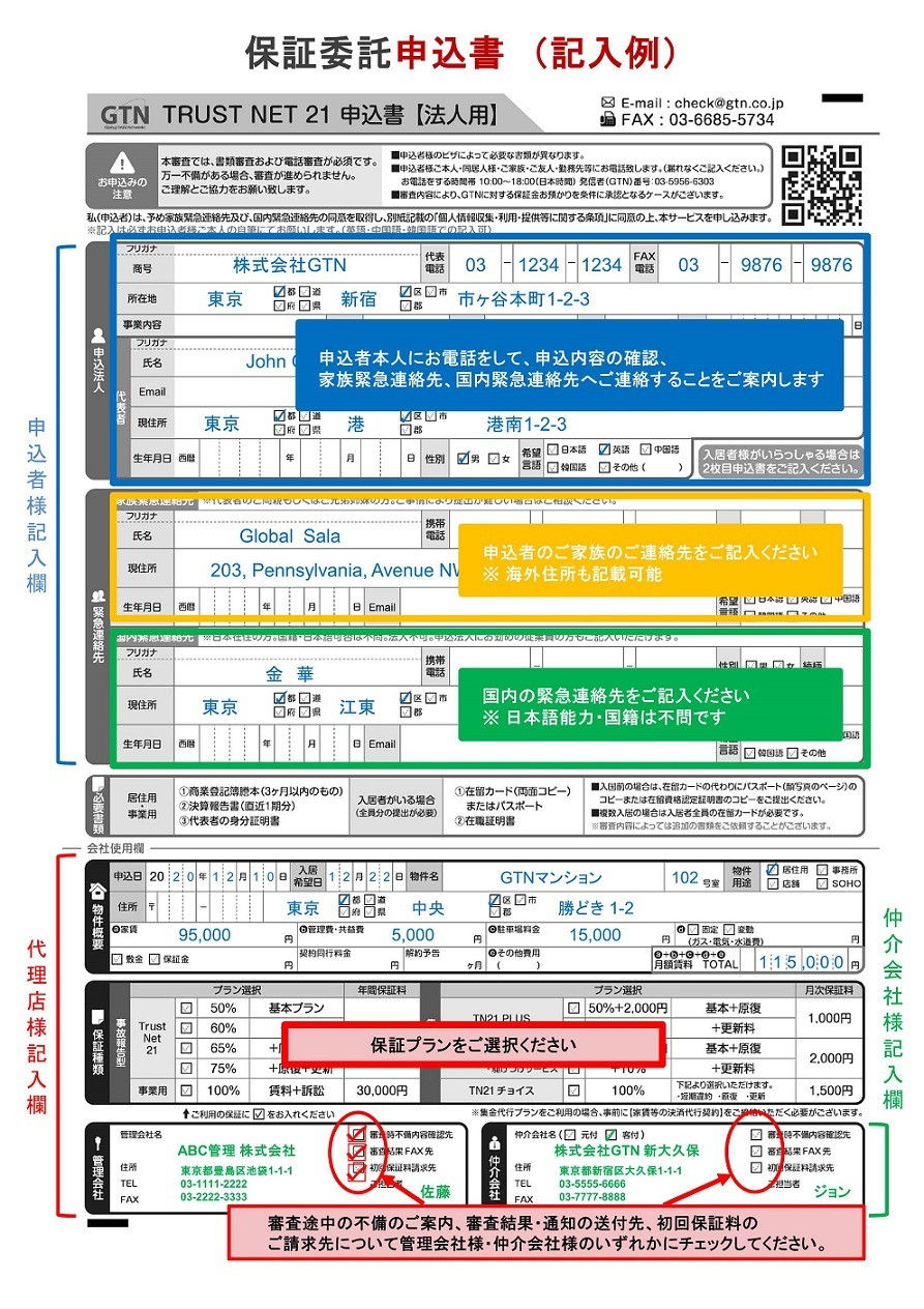 •保証会社「GTN」申込書(外国籍/法人用)<1枚目> <2枚目>
