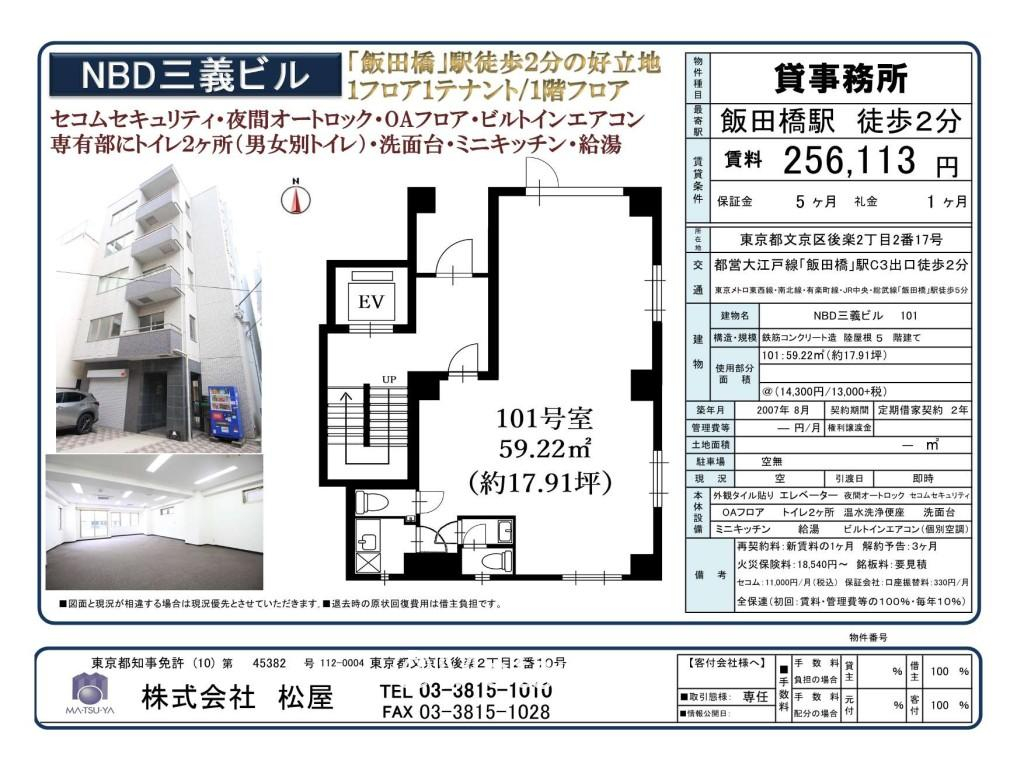 | 主要アクセス | 総武・中央緩行線 飯田橋駅 から 徒歩5分 | 保証金 | 5ヶ月 | 面積 | 59.22m 2 ( 17.91坪 ) |