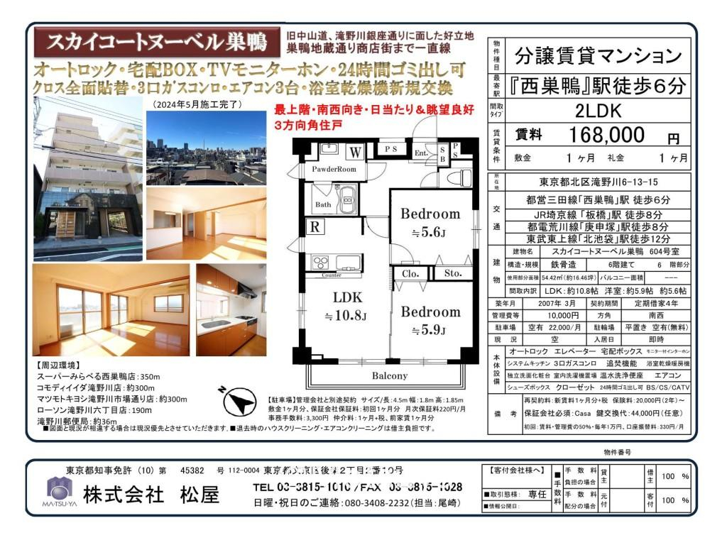 スカイコートヌーベル巣鴨への お問い合わせは株式会社松屋 まで